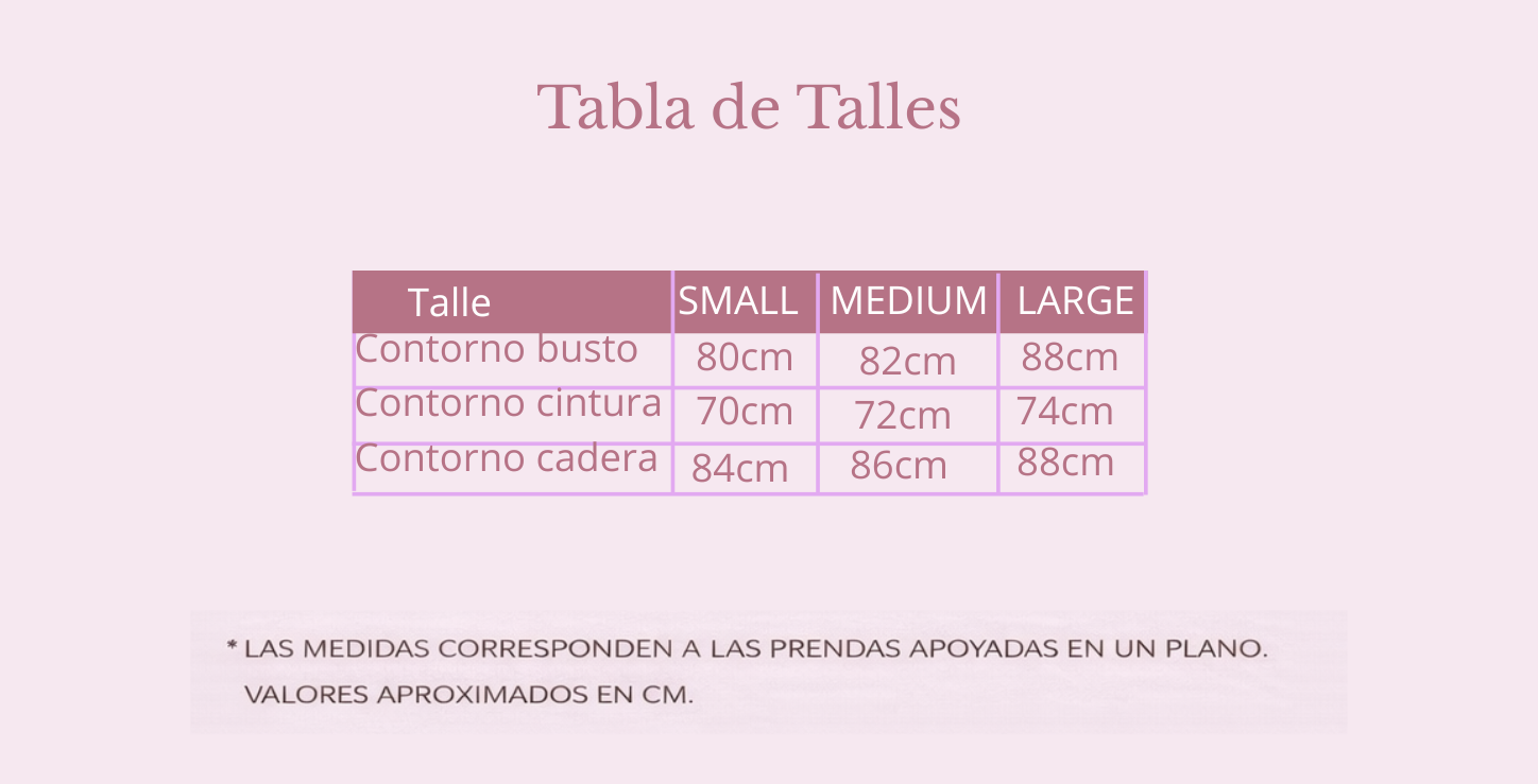 📏 Guía de talles (medidas aproximadas) Disponible en talles Small, Medium y Large.